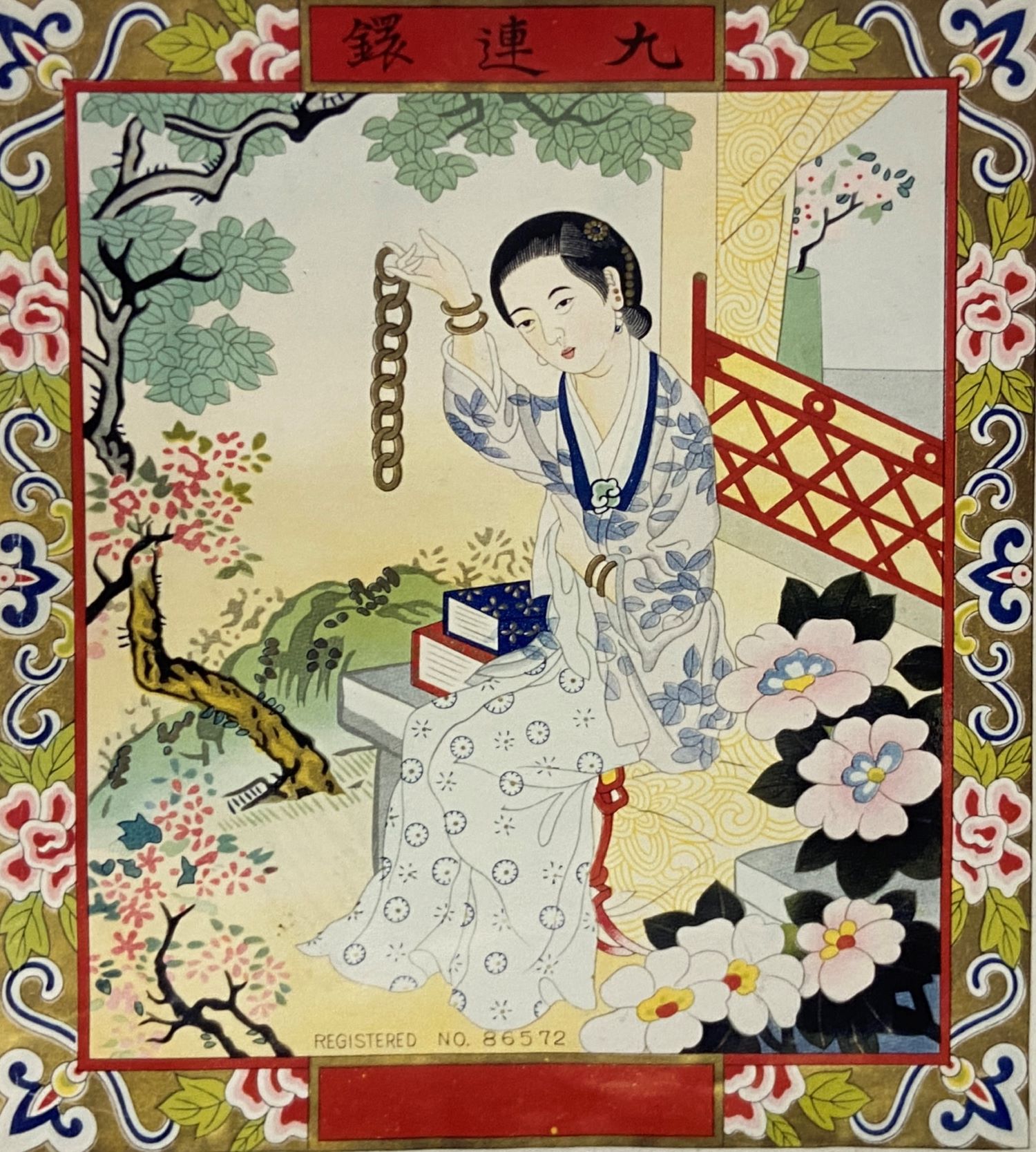 輸出商品の商標「九連鐶」。当時の太平洋諸島向け黒紐布の商標。