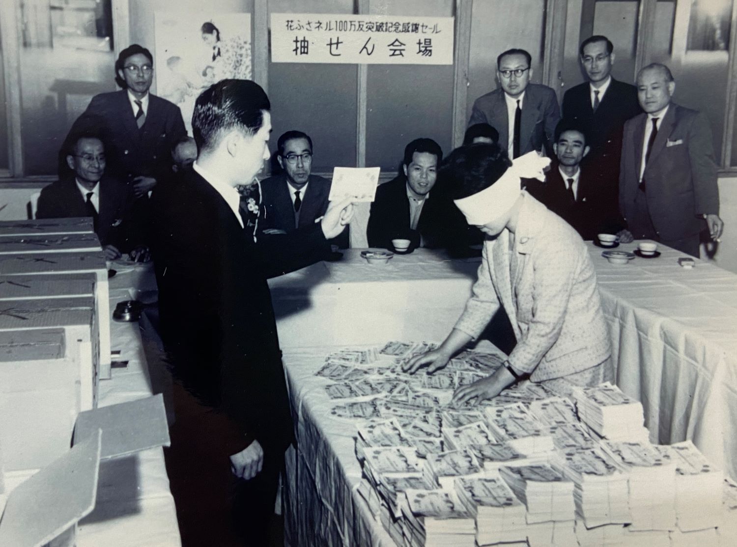 花ふさネル地1反に1枚の抽選券を添付し、当選者にテレビまたは電気冷蔵庫が当たるというものでした。