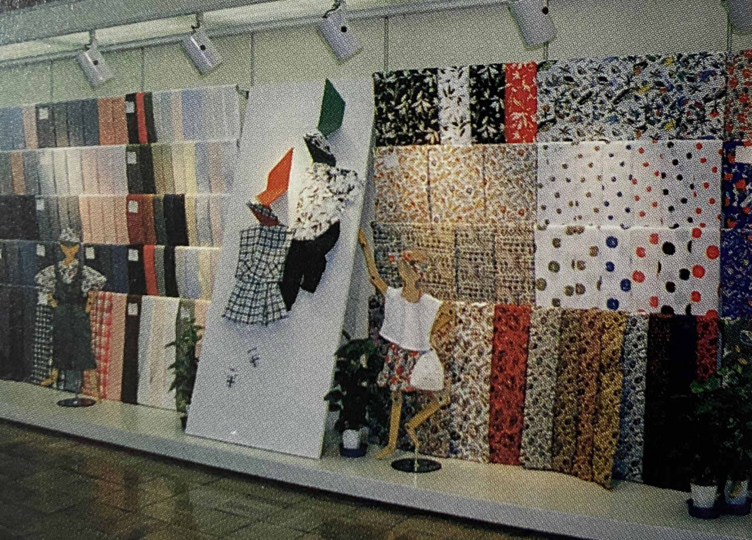 イースタンストッフ展。京都と大阪のアパレル、生地会社が年に1度行っていた合同展示会。洋装、寝具、特殊プリントなどを紹介した。昭和56年の写真。