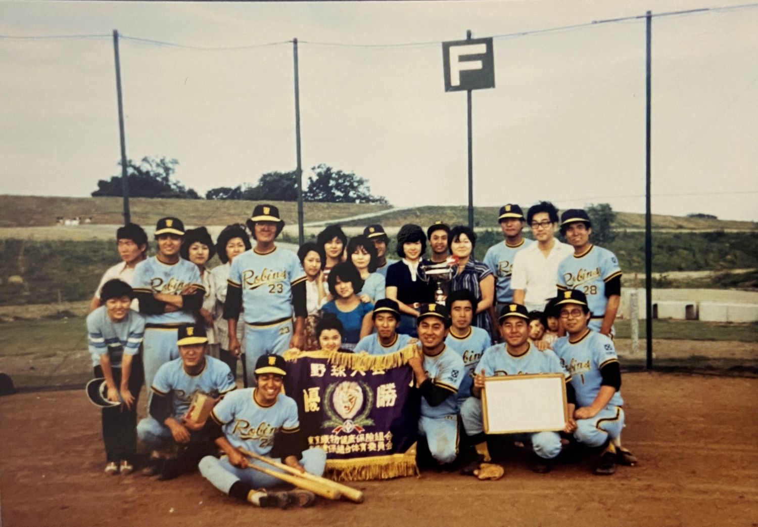 再結成した野球部。昭和26年11月18日大阪絹人絹織物商連合大会第1回優勝を果たす。