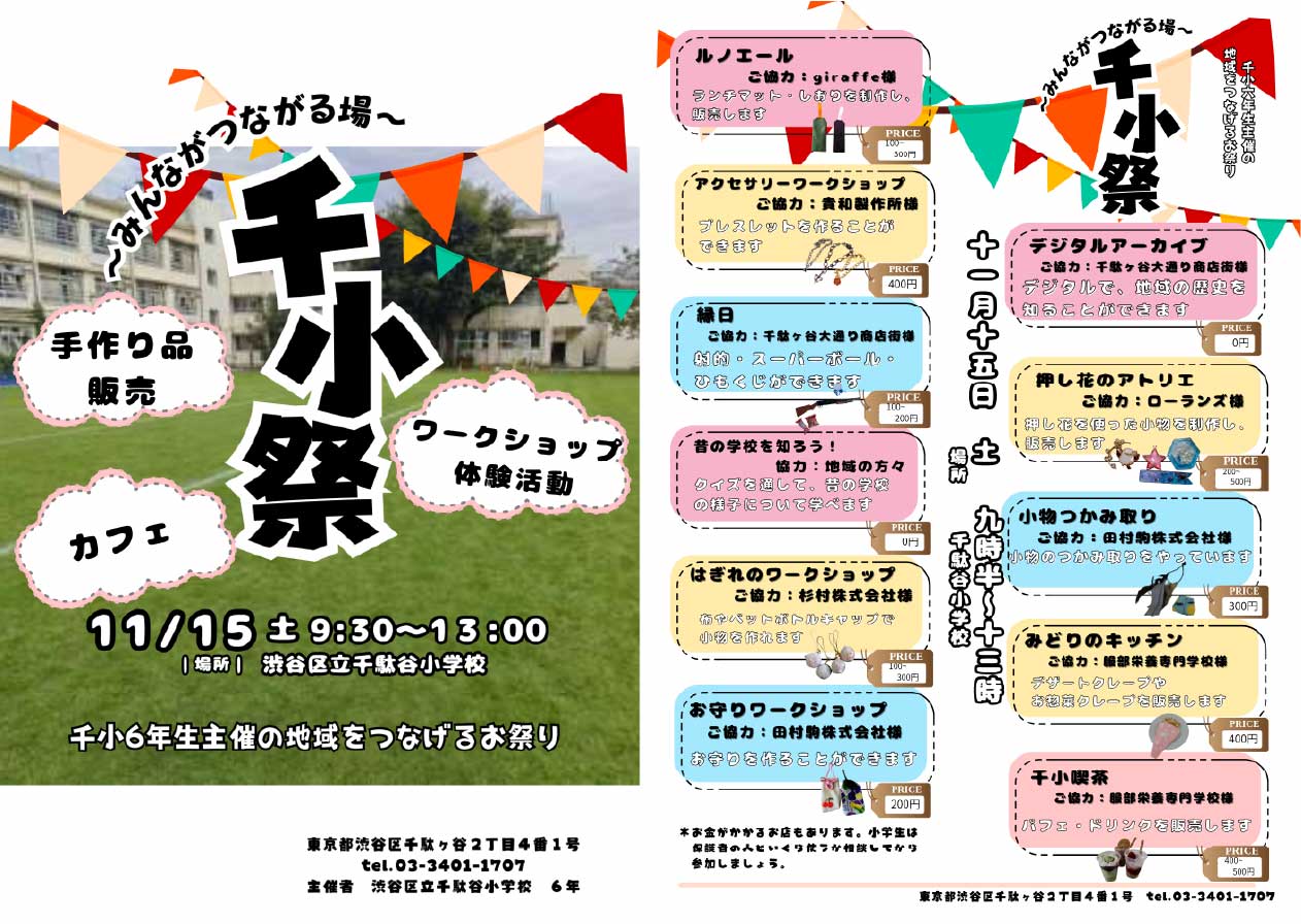 11月15日(土)9:30~13:00、千駄谷小学校内にて「千小祭」が無事開催に至りました。