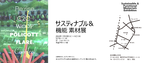 サスティナブル&機能素材展を開催!東京本社3階ショールーム・2022年11月15日(火)~16日(水)*完全アポイント制*