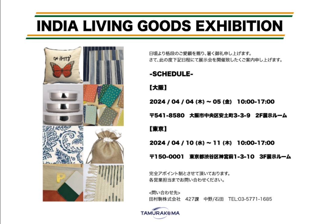 インド リビング雑貨展を開催! 大阪本社4/4(木)~4/5(金)、東京本社4/10(水)~4/11(木)