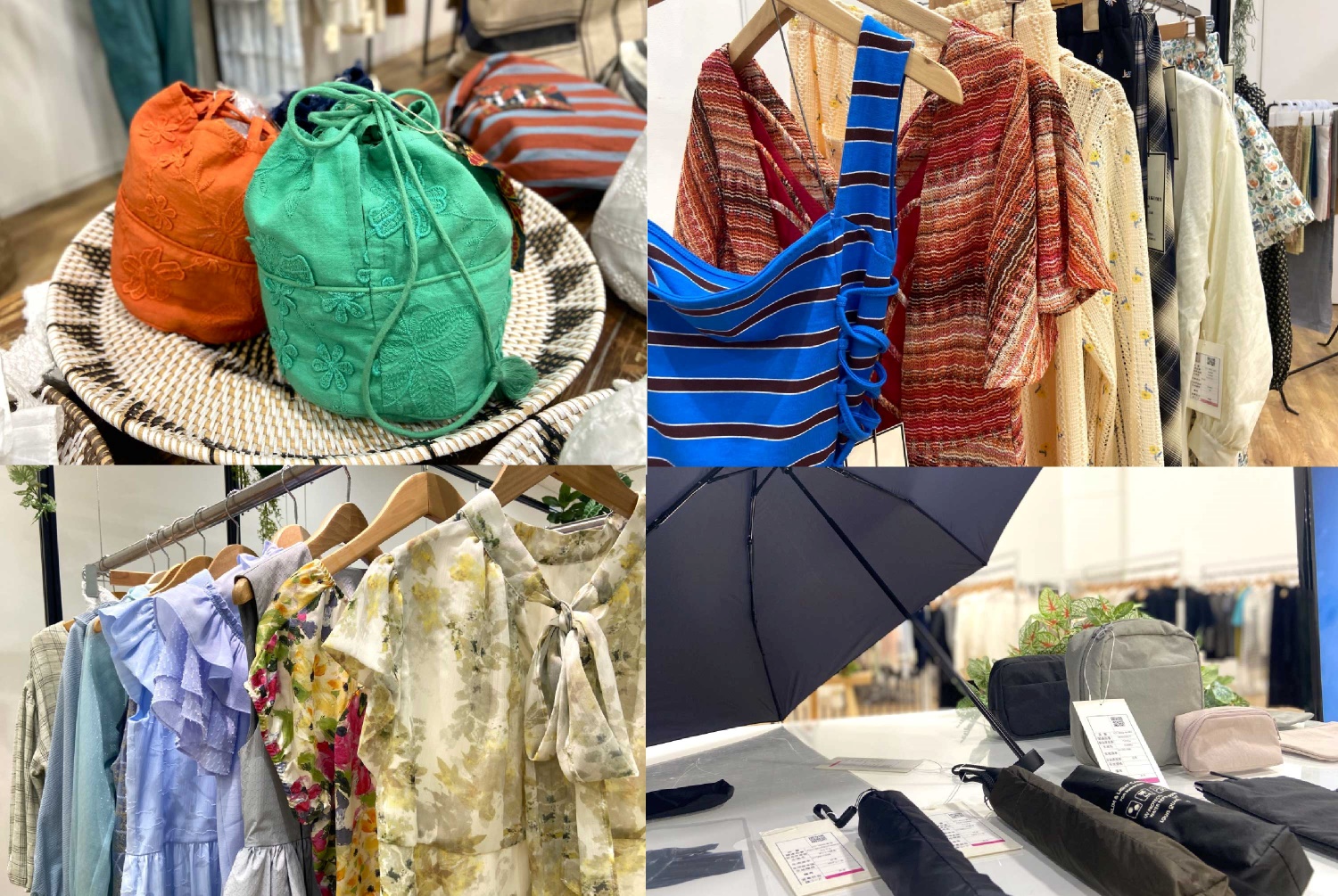 アパレル製品だけではなく、バッグや傘、ポーチなどの雑貨も提案いたしました。